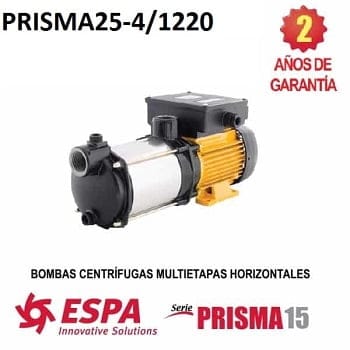 La bomba de agua 2 HP PRISMA25-4/1220, es parte de la serie PRISMA de bombas centrÍfugas multietapas horizontales marca Espa.