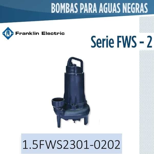 Bomba sumergible para lodos de 1.5 HP, marca Franklin modelo 1.5FWS2301-0202, 1 F, 230 V, descarga de 2″ Ø, paso de sólidos 2″. Rango de carga de 2.3 a 11.20 mca. Gasto 871 litros por minuto a 2.3 mca / 144 litros por minuto a 11.20 mca.