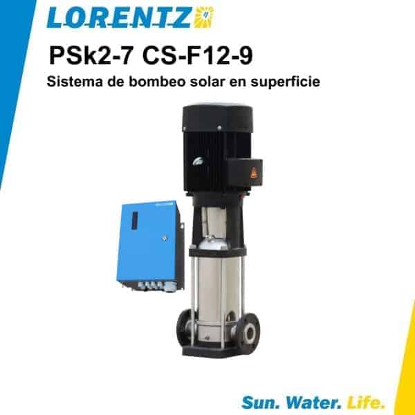 La bomba solar de superficie PSK2-7 CS-F12-9, es en sí, un sistema de bombeo de agua solar completo, de la serie PSk2 de Lorentz