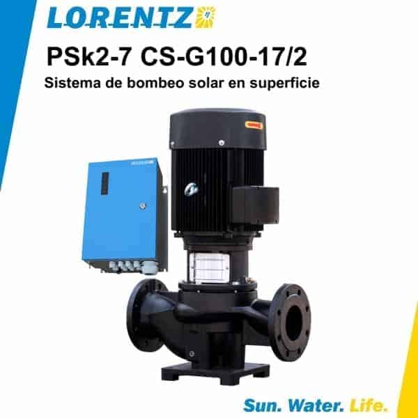 La bomba solar de superficie PSK2-7 CS-G100-17-2, es en sí, un sistema de bombeo de agua solar completo, de la serie PSk2 de Lorentz