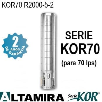 La bomba sumergible Altamira 200 HP KOR70 R2000-5-2, forma parte de la prestigiada serie KOR de bombas para pozo profundo, con un gasto nominal de 70 litros por segundo de la reconocida marca Altamira.