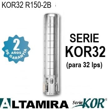 La bomba sumergible Altamira KOR32 R150-2B, forma parte de la prestigiada serie KOR de bombas para pozo profundo, con un gasto nominal de 32 litros por segundo de la reconocida marca Altamira.